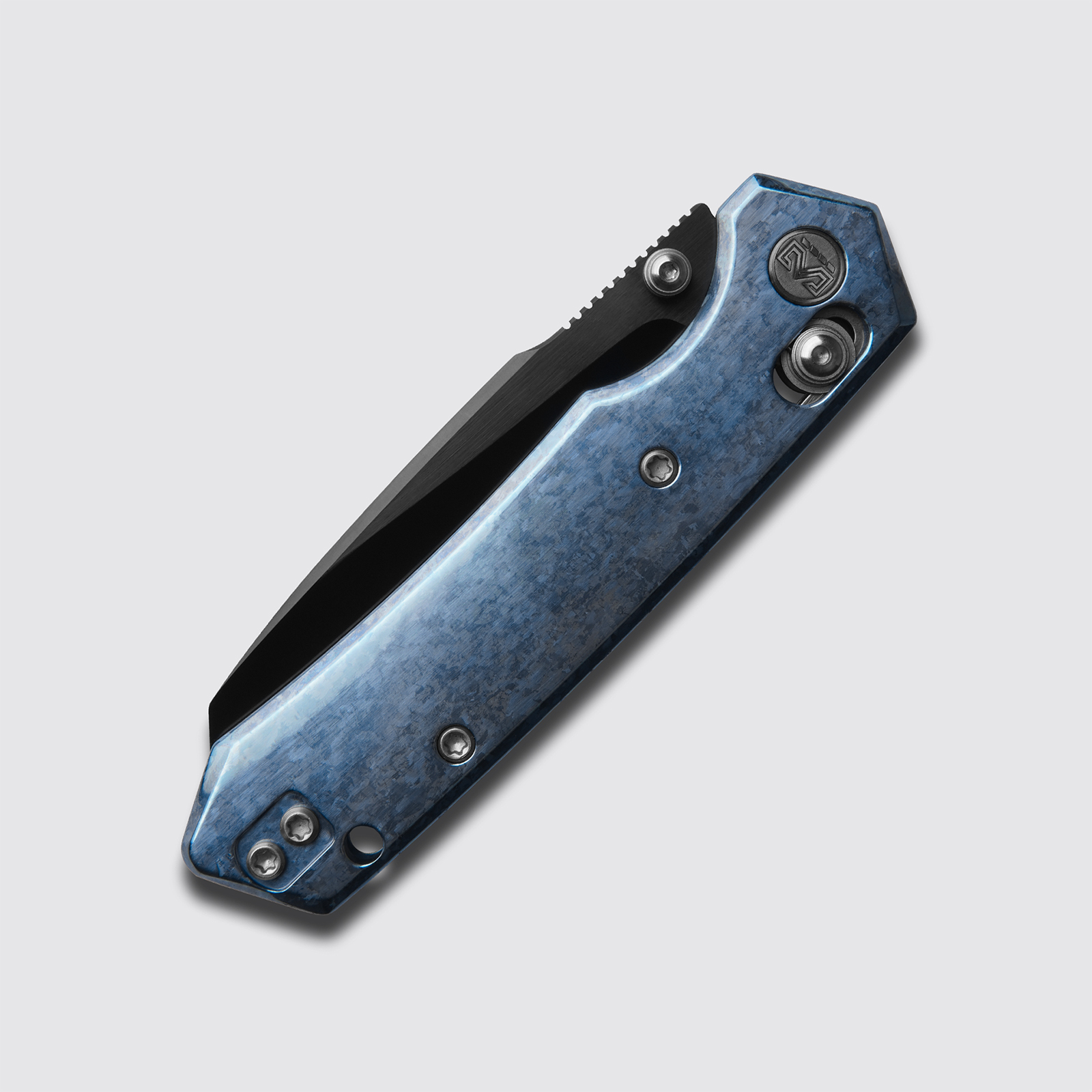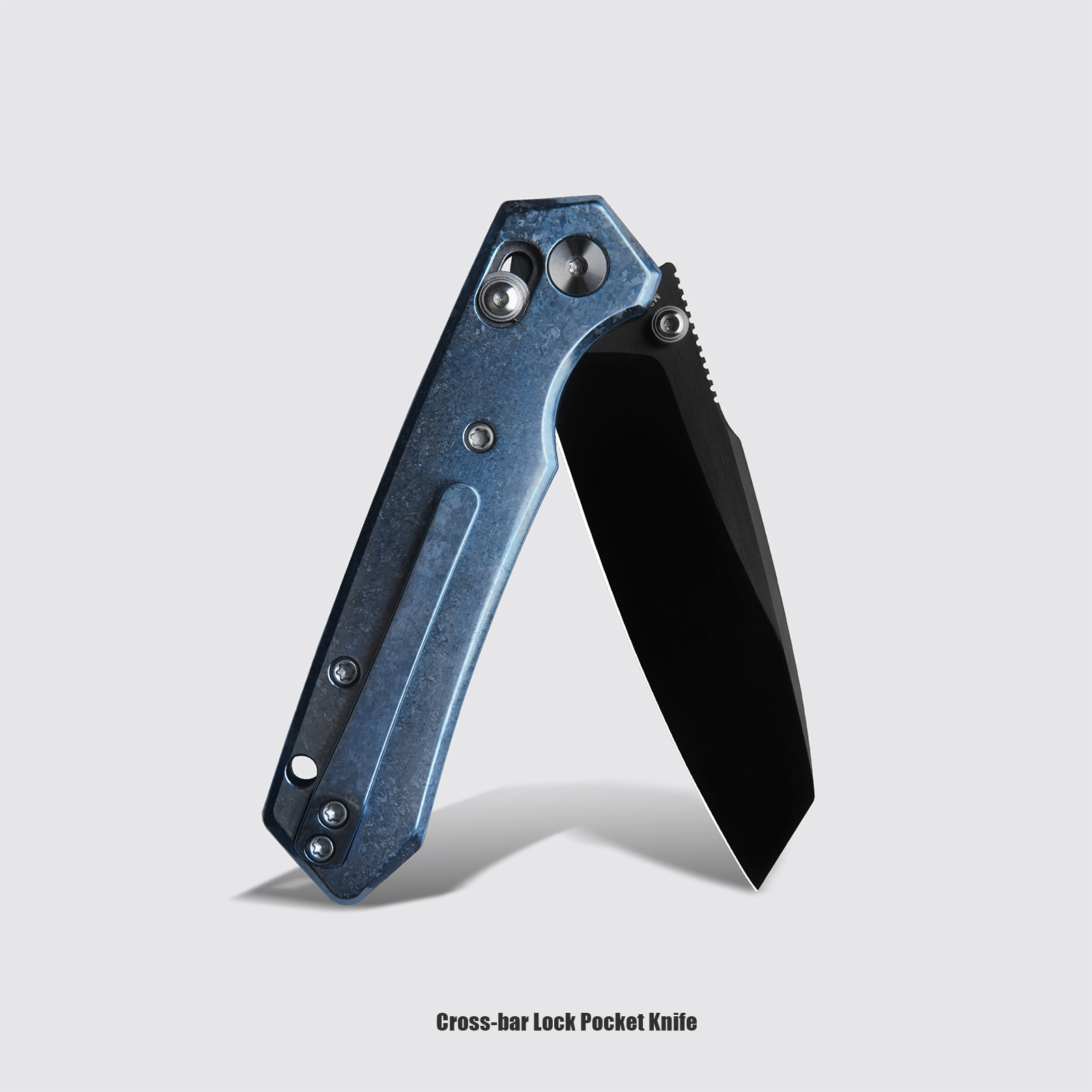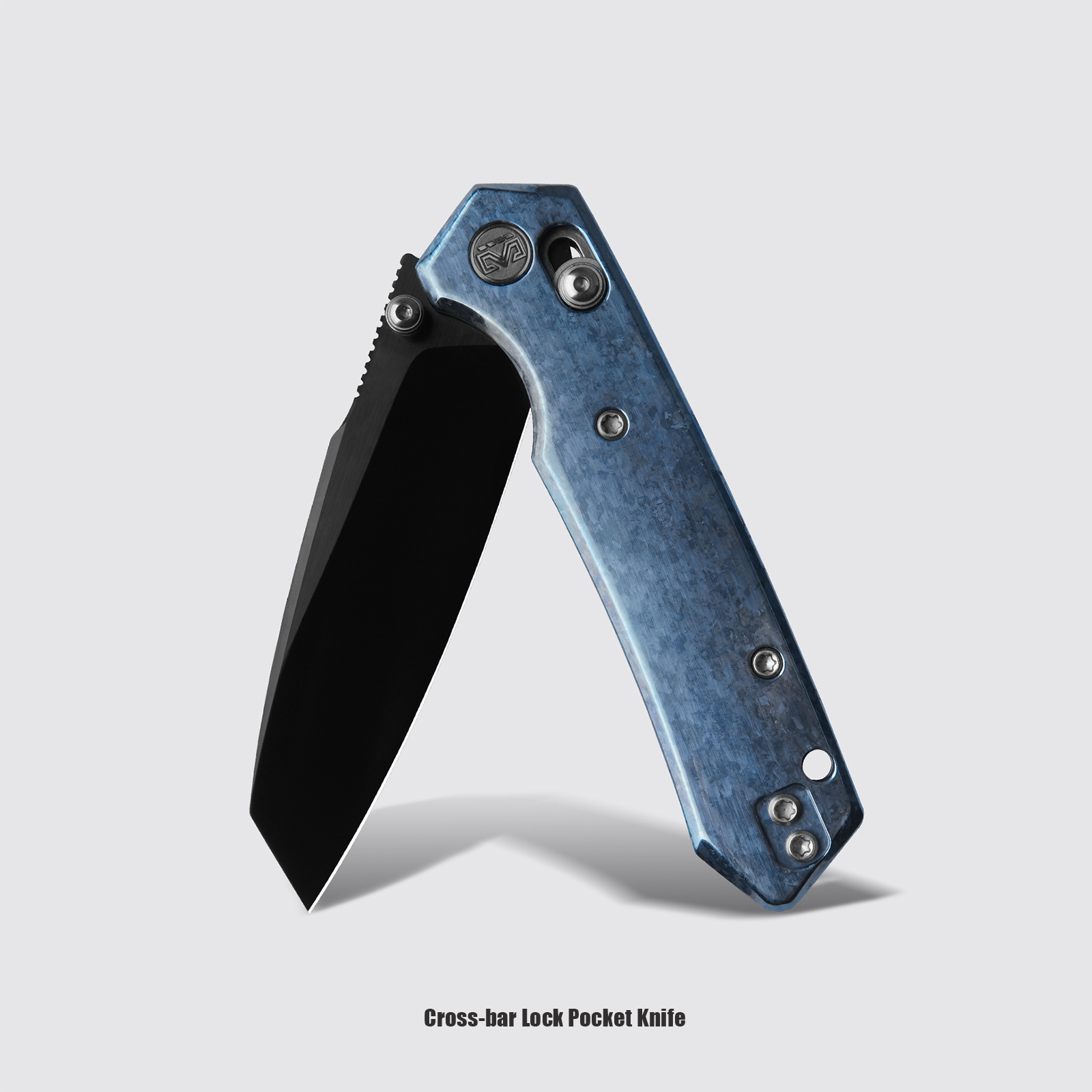 M Miguron Knives Vatso Cross-bar Lock Folding Knife 2.99" M390 Satin With DLC Blade Blue Crystal Titianium Handle Camping Hiking Pocket Knife